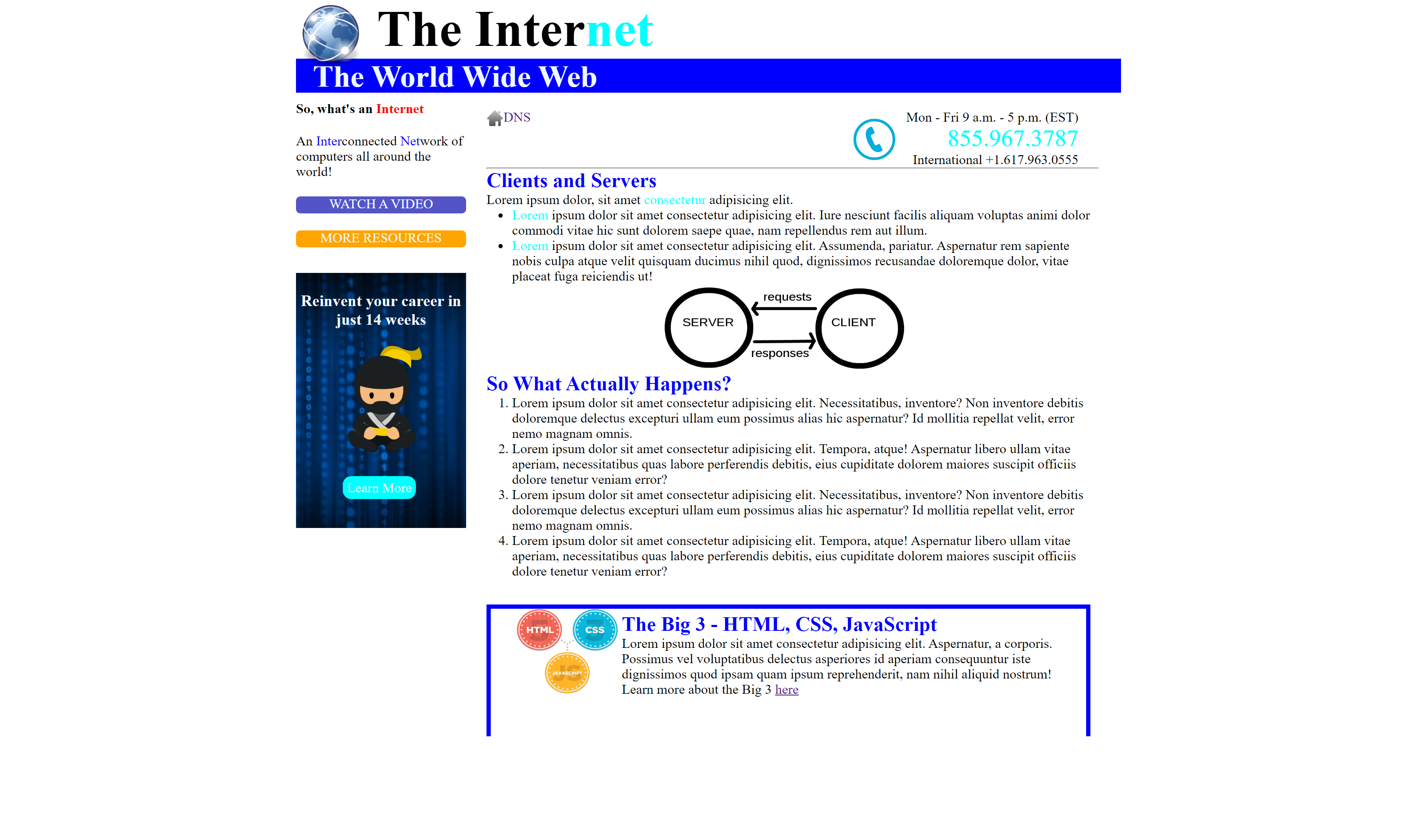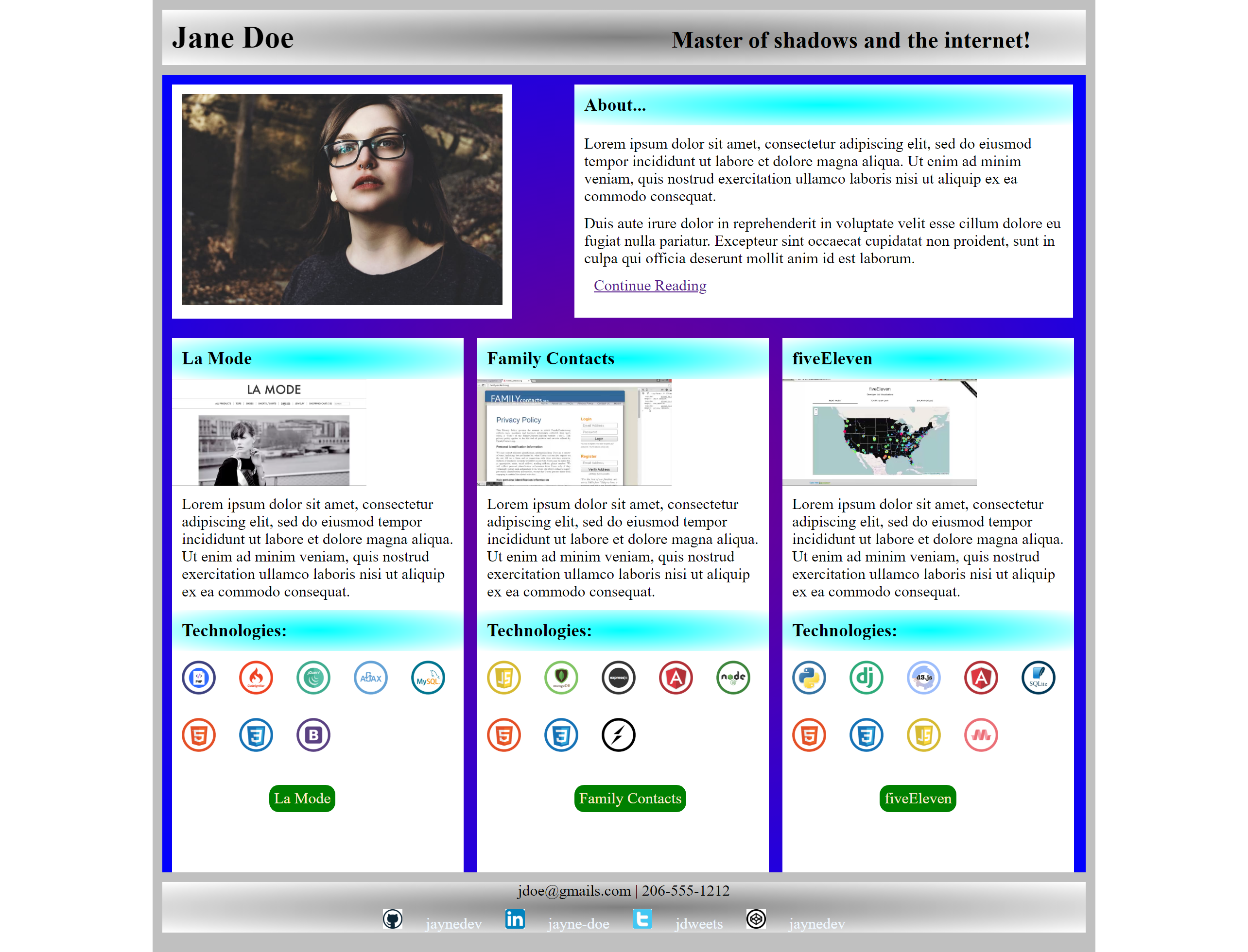 Estos son algunos de los proyectos que hice durante el Bootcamp de Coding Dojo, trabajando con HTML5 y CSS3.